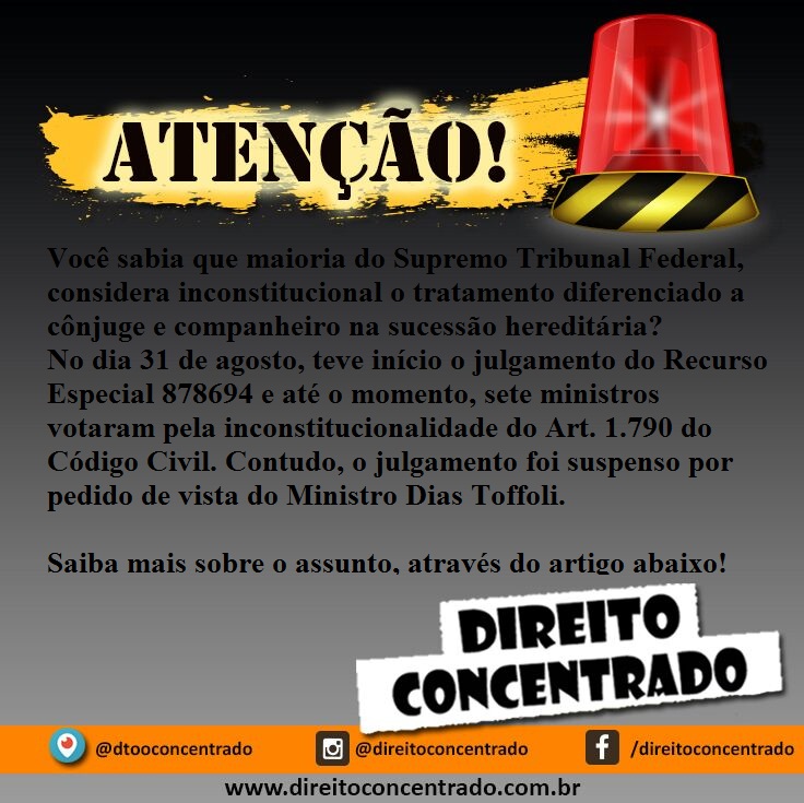 Olá caros leitores, está para ser votada no Supremo Tribunal Federal a ação que discute quanto a (In) Constitucionalidade do Art. 1.790 do Código Civil.